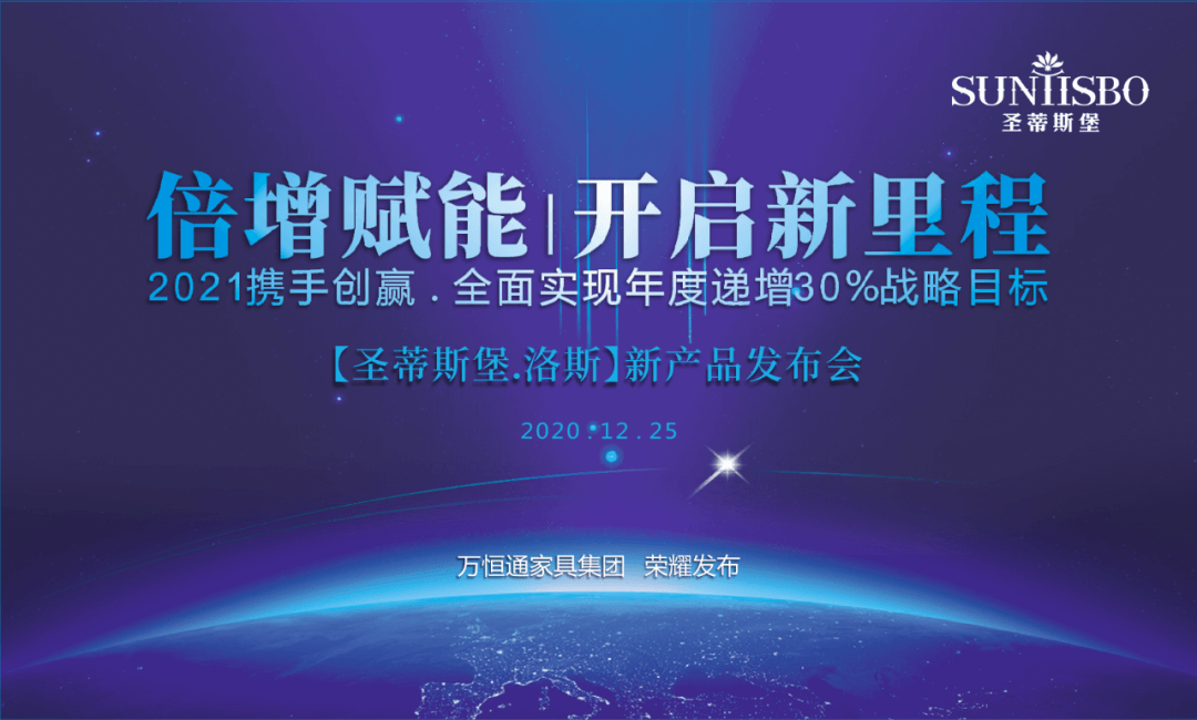 2020年12月25日,倍增赋能|开启新里程——“圣蒂斯堡·洛斯”新品发布会在?广东省东莞市厚街镇会展中心南路2号的集团营销中心盛大举行,圣蒂斯堡董事长王健文先生携公司高层领导,与来自五湖四海的经销商家人们欢聚一堂,共同见证【圣蒂斯堡·洛斯】新品荣耀面世,正式拉开了圣蒂斯堡2021年的发展序幕。